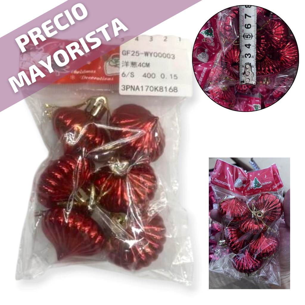 ADORNO NAVIDEÑO COLGANTE PLASTICO FORMA DE CEBOLLA X6 PIEZAS 4CM