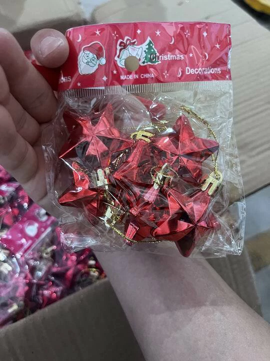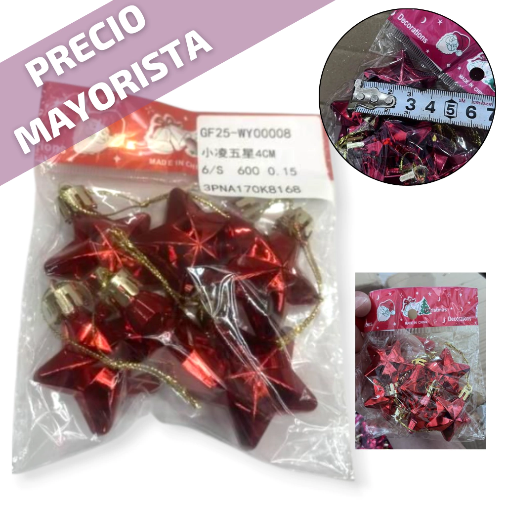 ADORNO NAVIDEÑO COLGANTE PLASTICO FORMA DE ESTRELLAS X6 PIEZAS 5CM