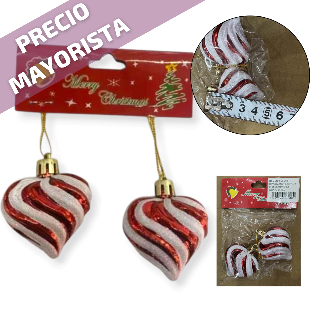 ADORNO NAVIDEÑO COLGANTE X2 PLASTICO 4CM X2 PIEZAS CORAZON