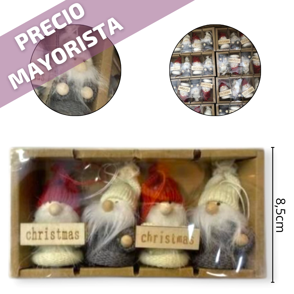 ADORNO PAÑO NAVIDEÑO COLGANTE GNOMO X4 PIEZAS