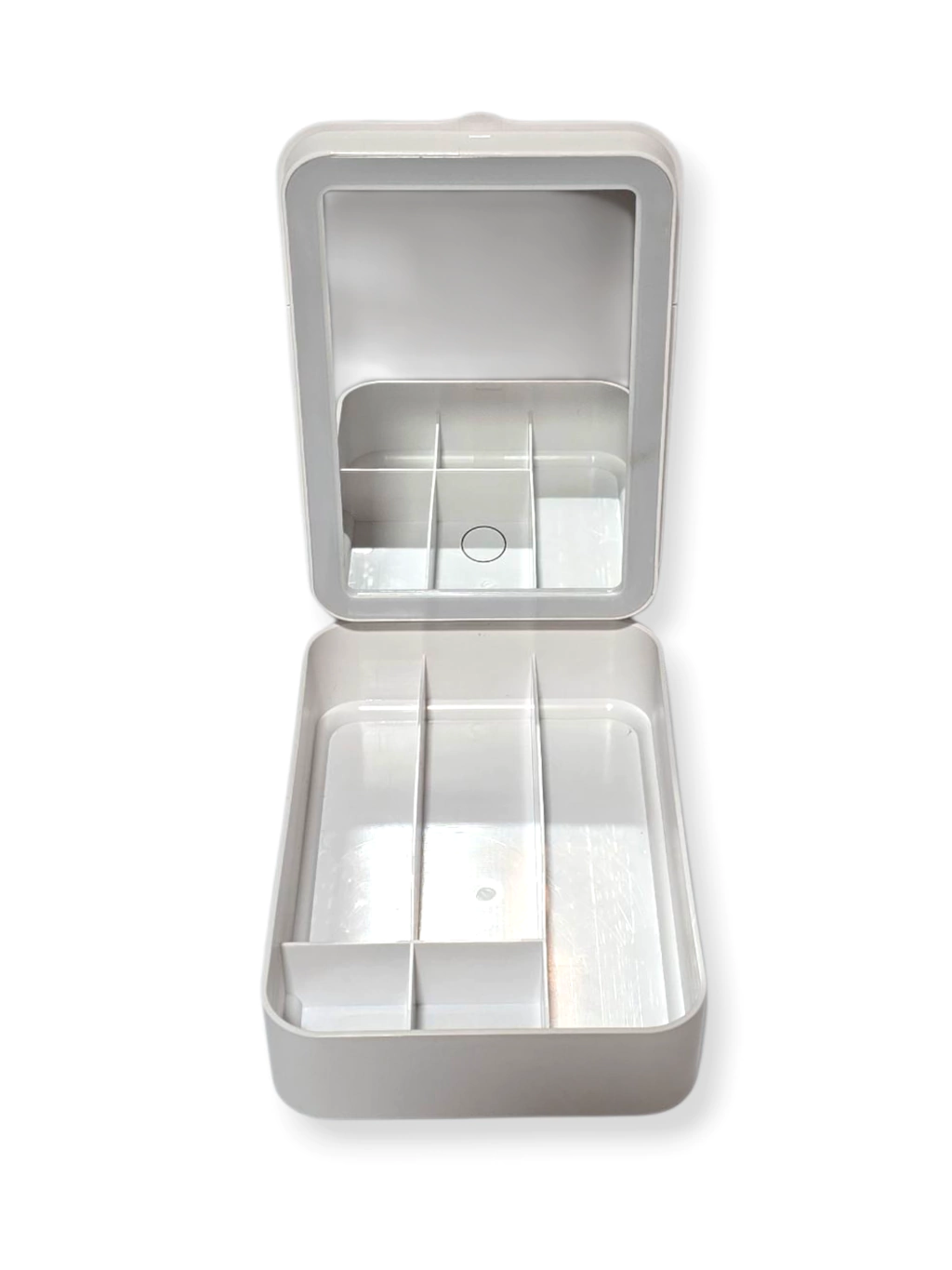 ESPEJO DE MAQUILLJAE CON LUZ RECTANGULAR PORTA BIJOU 2 COLORES 3 INTENSIDADES DE LUZ 20X14CM