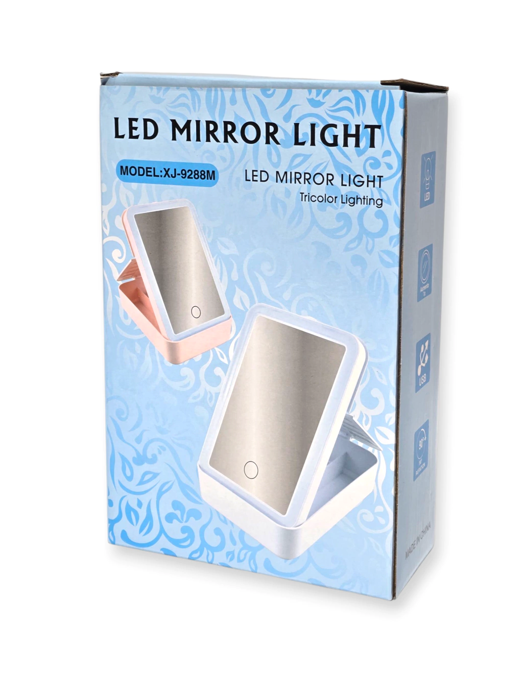 ESPEJO DE MAQUILLJAE CON LUZ PORTA BIJOU 2 COLORES 3 INTENSIDADES DE LUZ 20X14CM