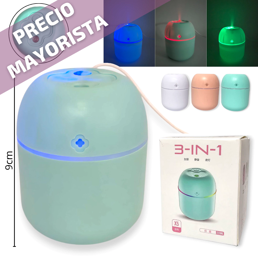 HUMIDIFICADOR PLASTICO USB CON 2 FILTROS 3 COLORES CON LUZ