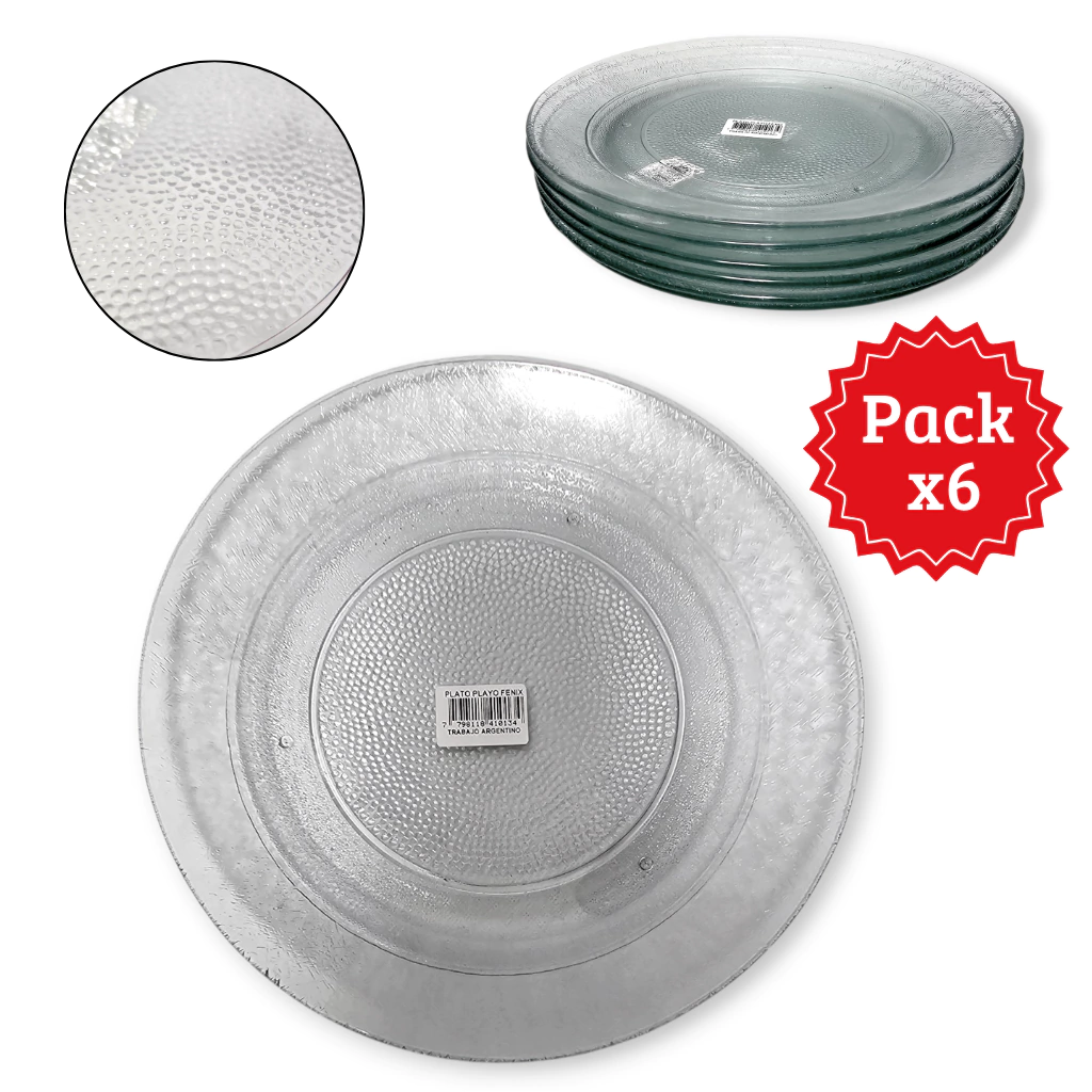 Platos playo X6 unidades Vidrio Cena Circular Plato fenix