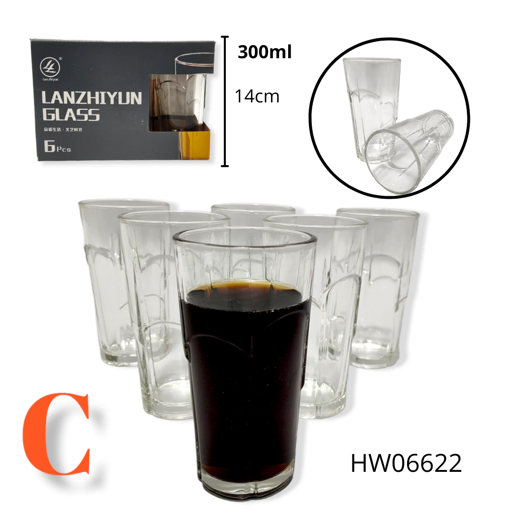 Vasos Vidrio Alto Varios Diseños Agua Jugo X6 Unidades Bazar