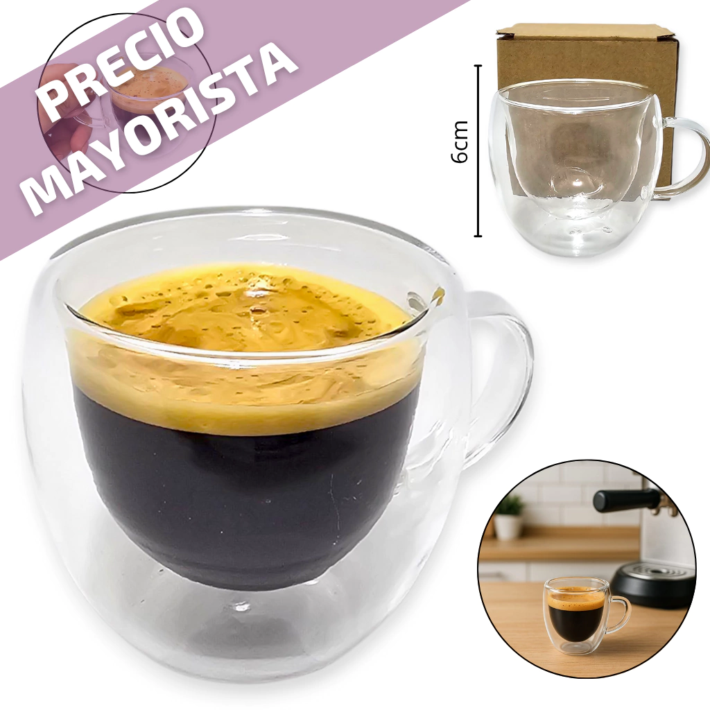 Vidrio Taza Jarro Cafe Te Doble Pared chica Manija Bazar