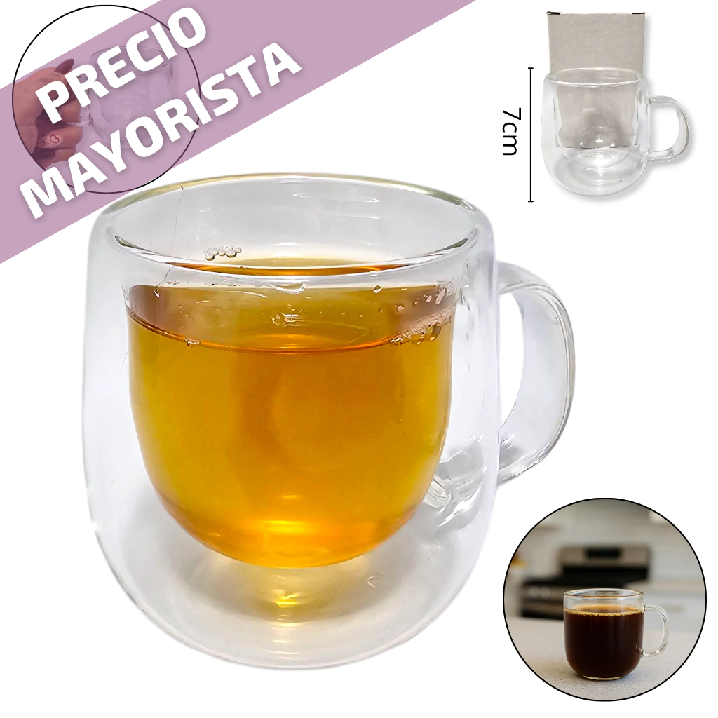 Vidrio Taza Jarro Café Te Doble Pared Manija Bazar