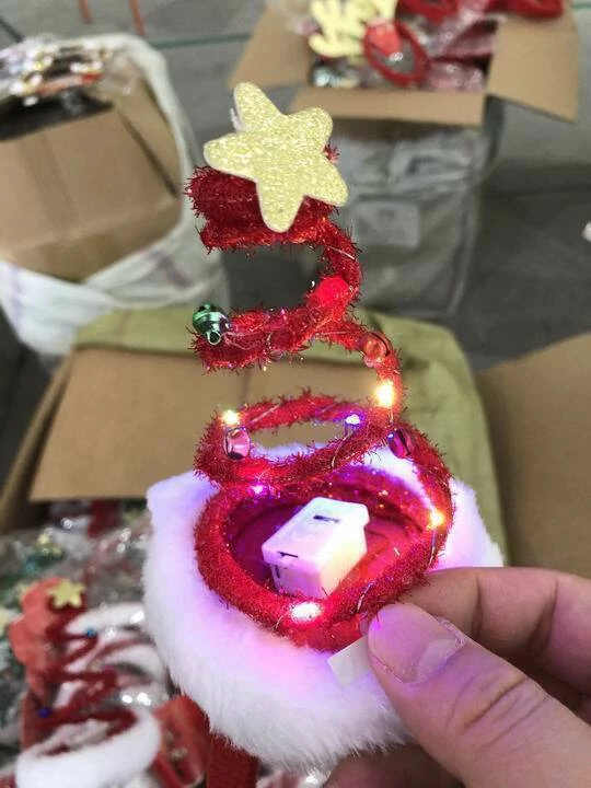 VINCHA NAVIDEÑA x6 unidades CAMPANA 2 COLORES 24CM CON LUZ